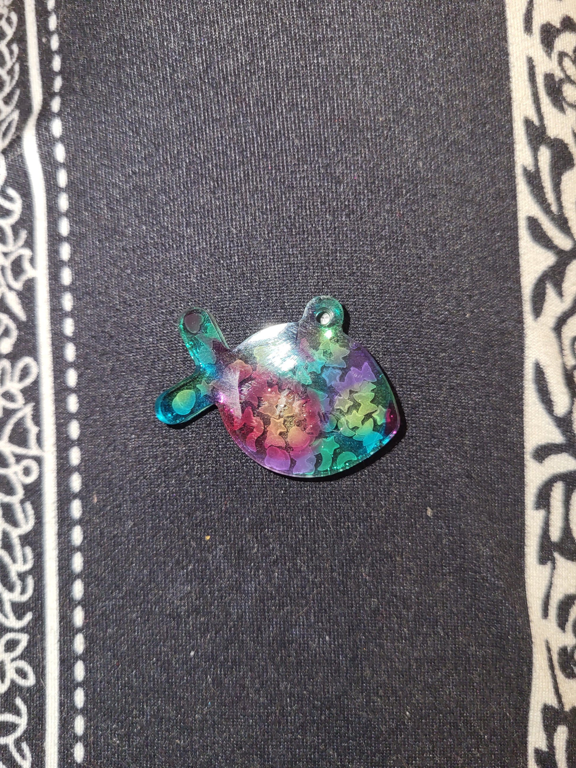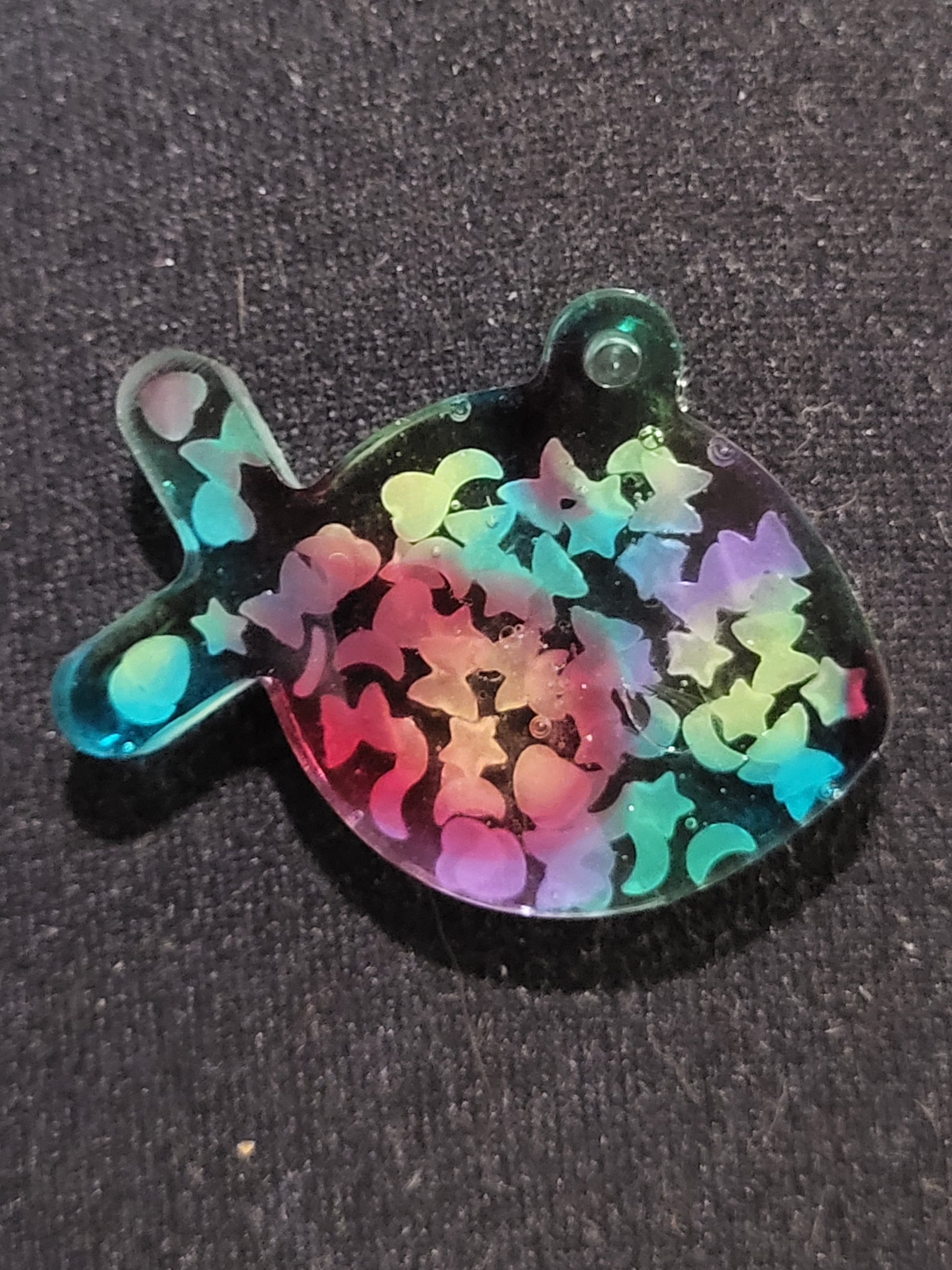 Tye dyed and glow in the dark personalized animal tags made out of uv resin and glow in the dark charms. Email me name to put on tag♡