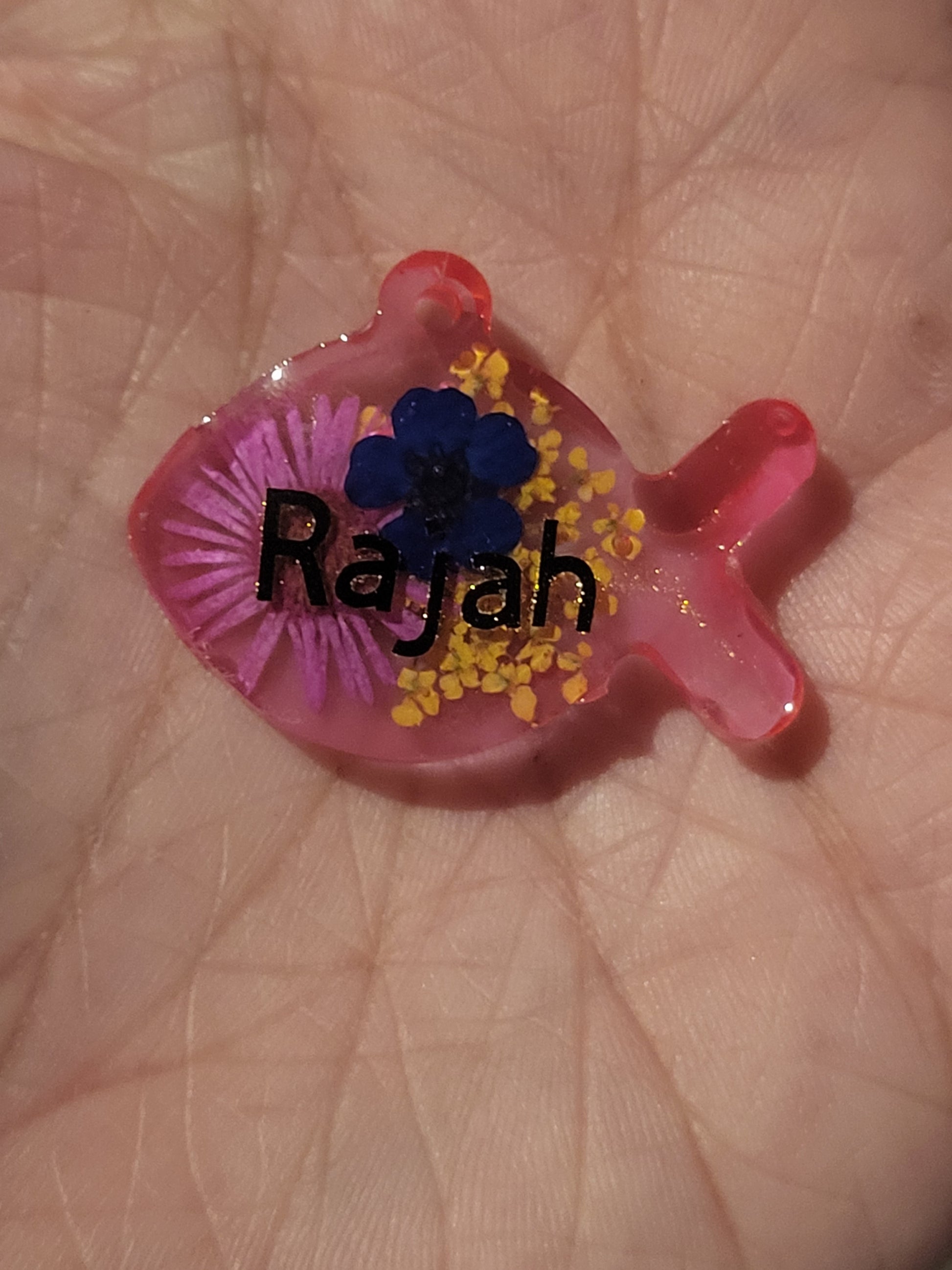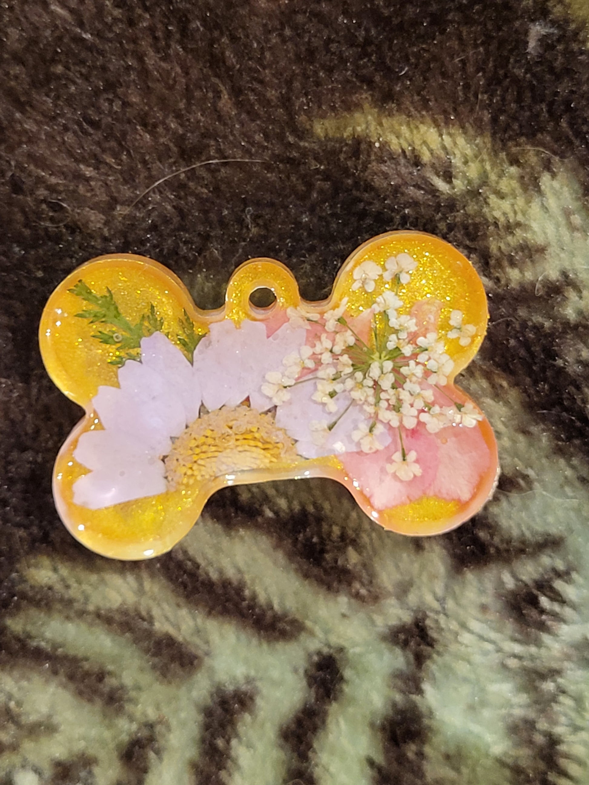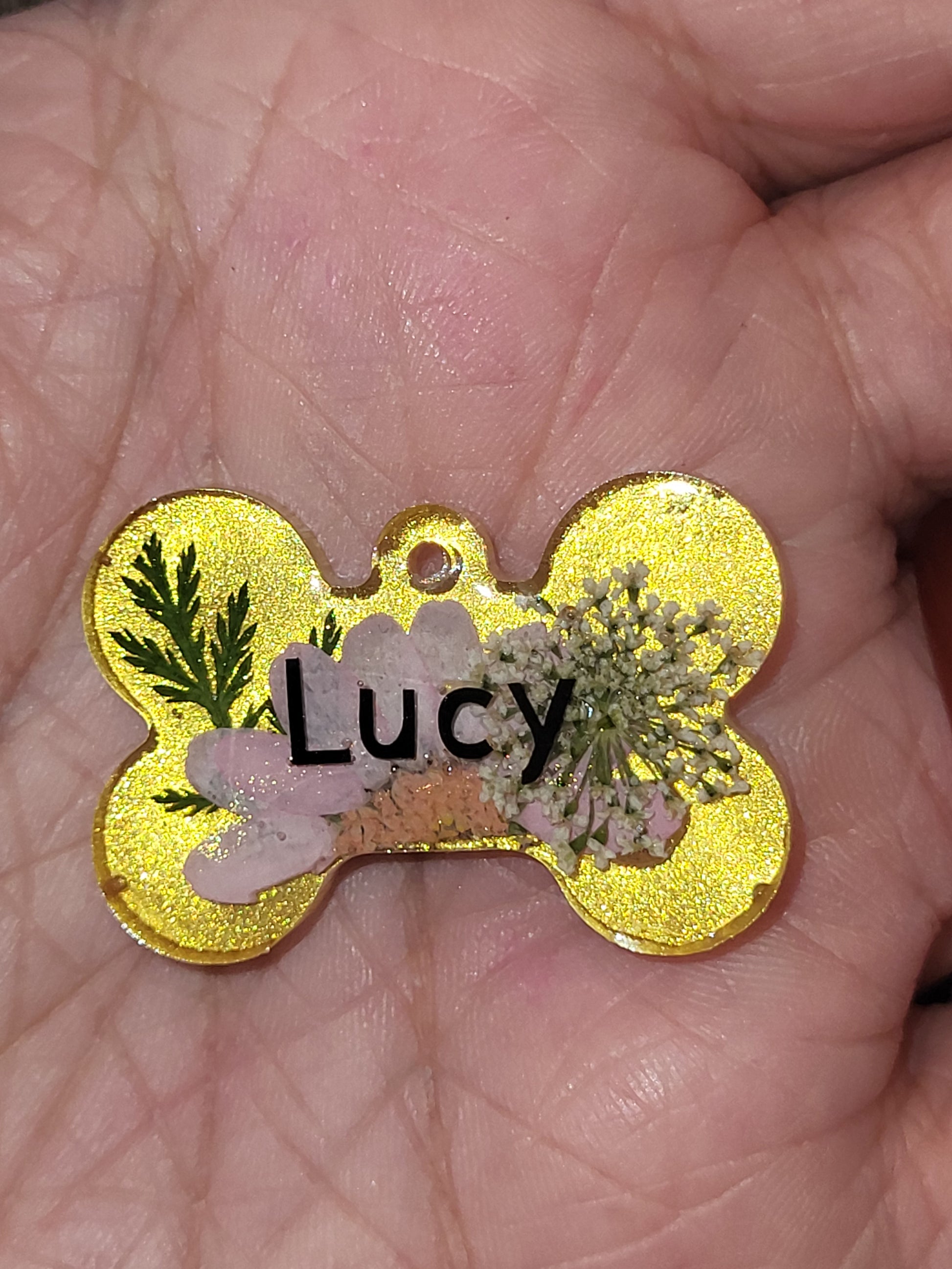 Personalized Uv resin animal tags with dried flowers, and soild colors. Aswell as gold!