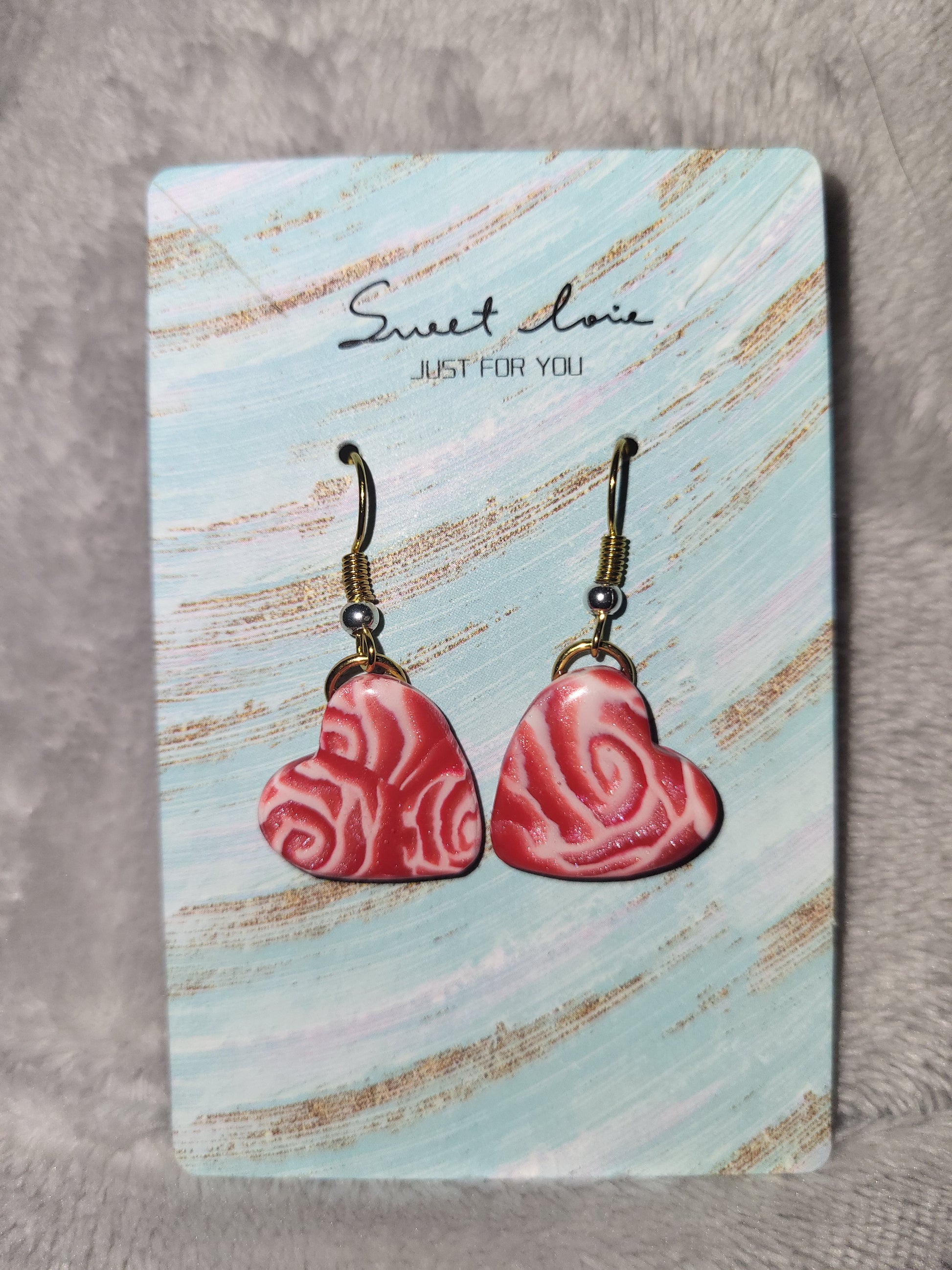 Roses made out of clay canes. Shaped into a heart and made into earrings ♡