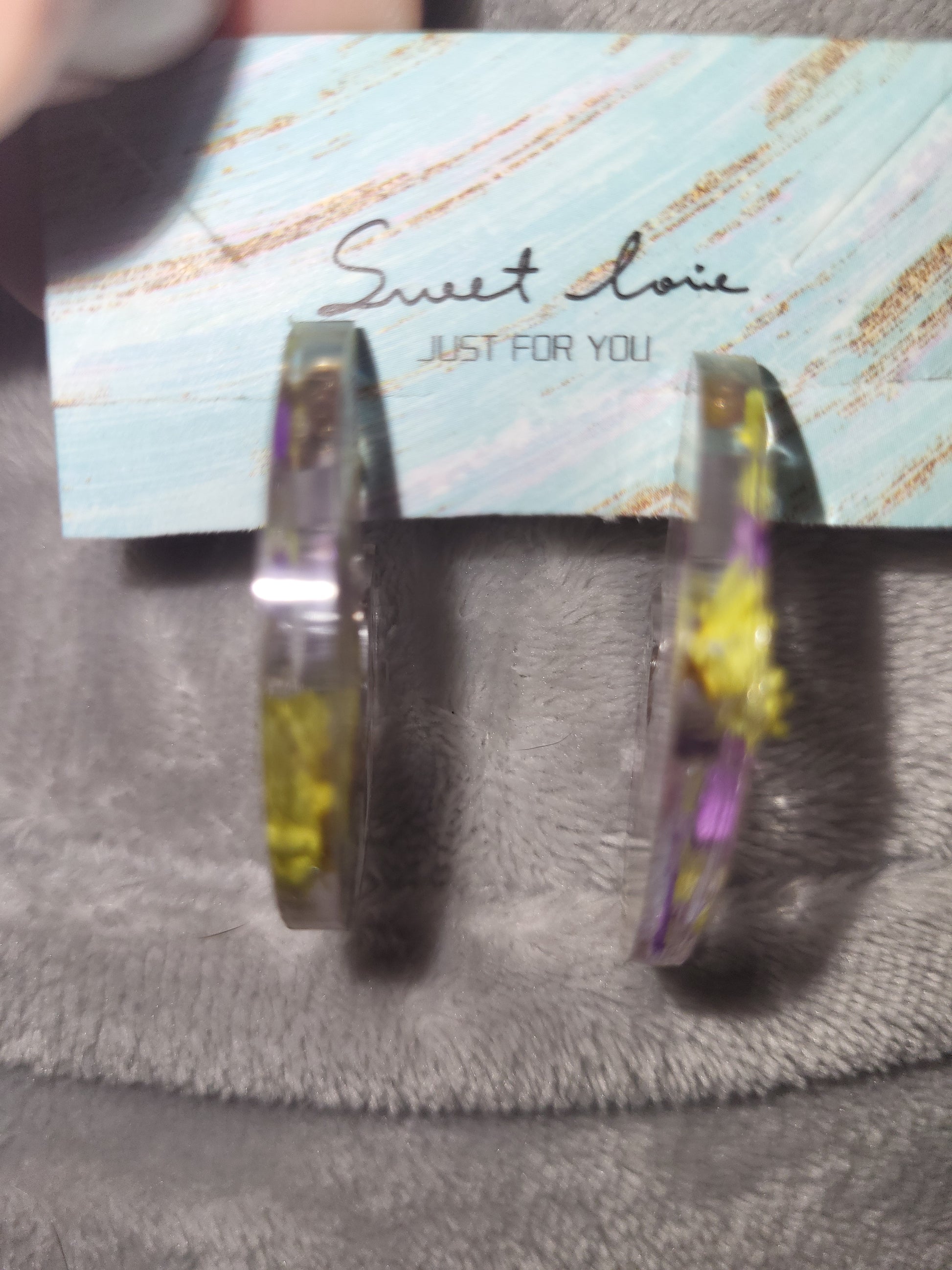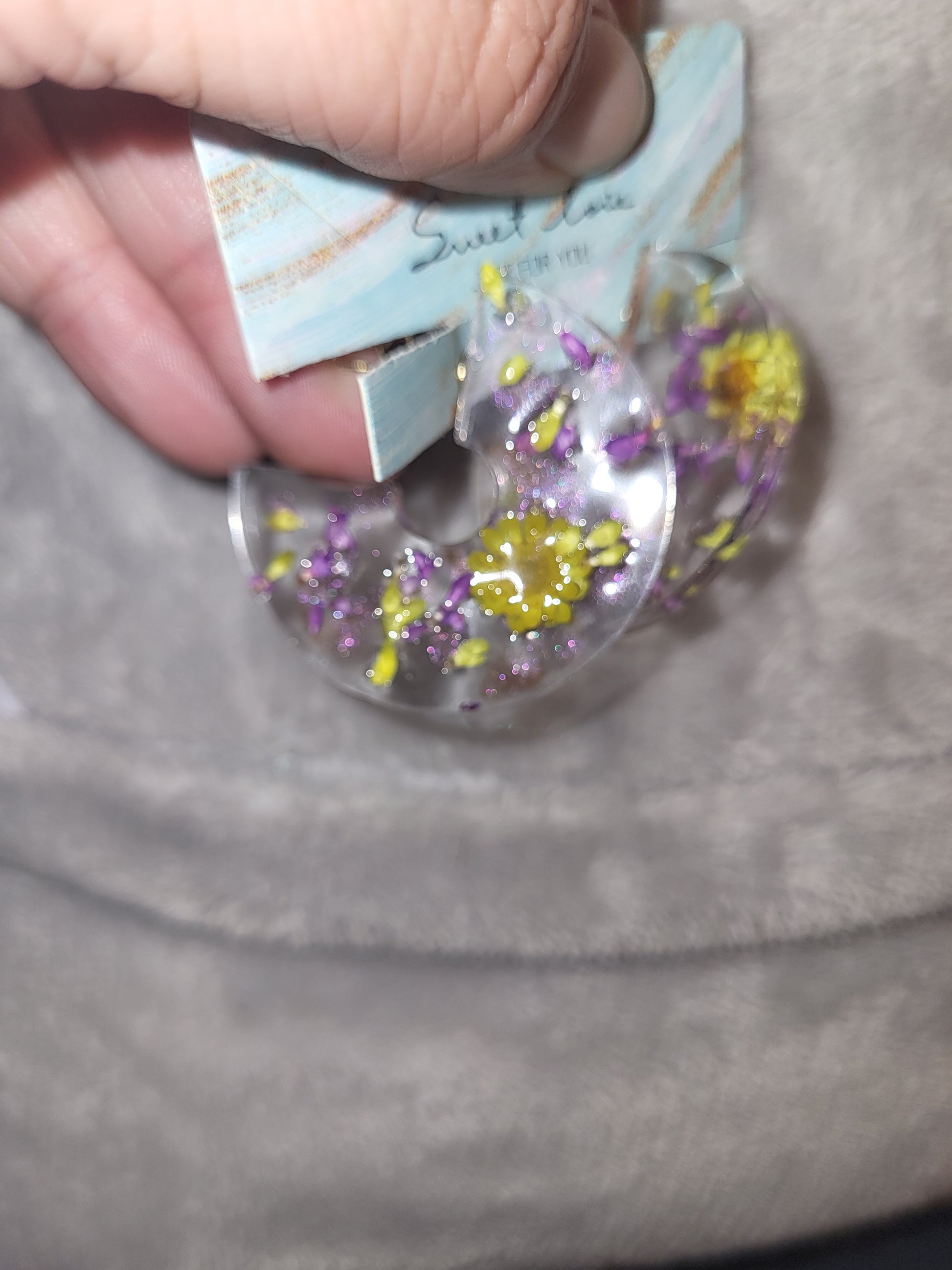 Earrings made out of uv resin and dried flowers, oohh and glitter! Very unique earrings♡
