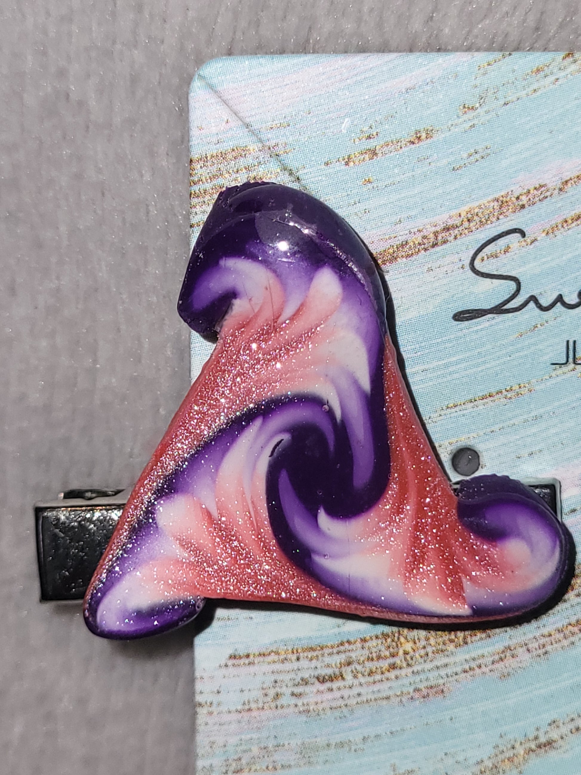Hairclip with clay canes on it