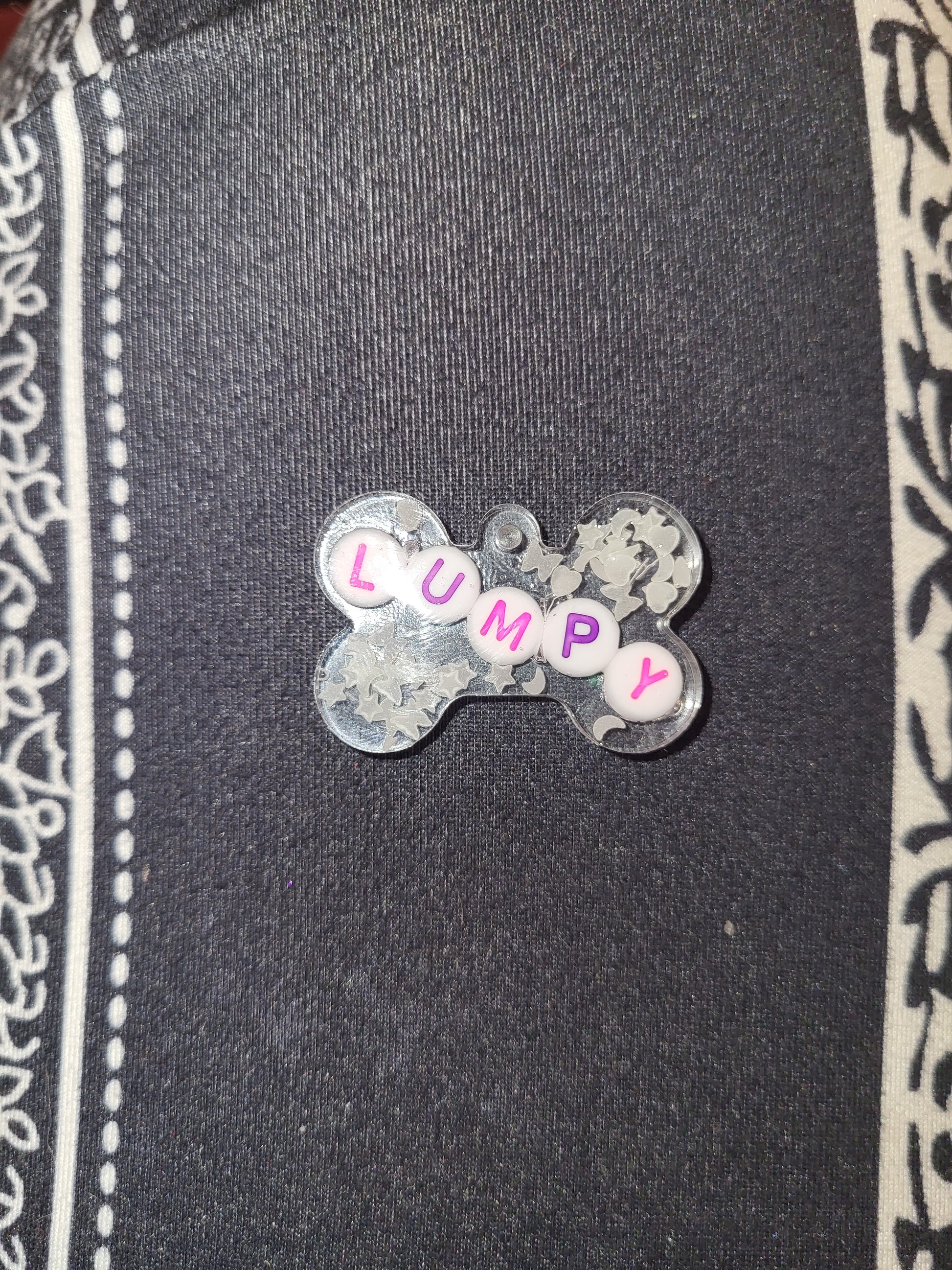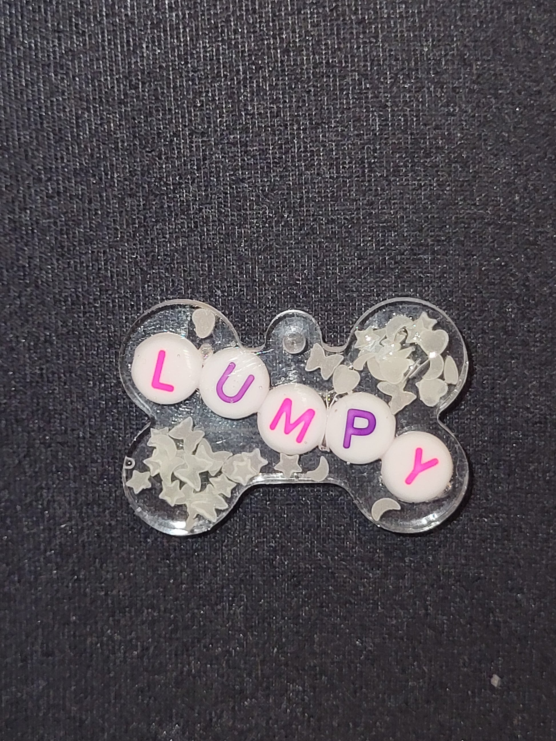 Personalized animal tags with beaded name made out of uv resin. Email me names.