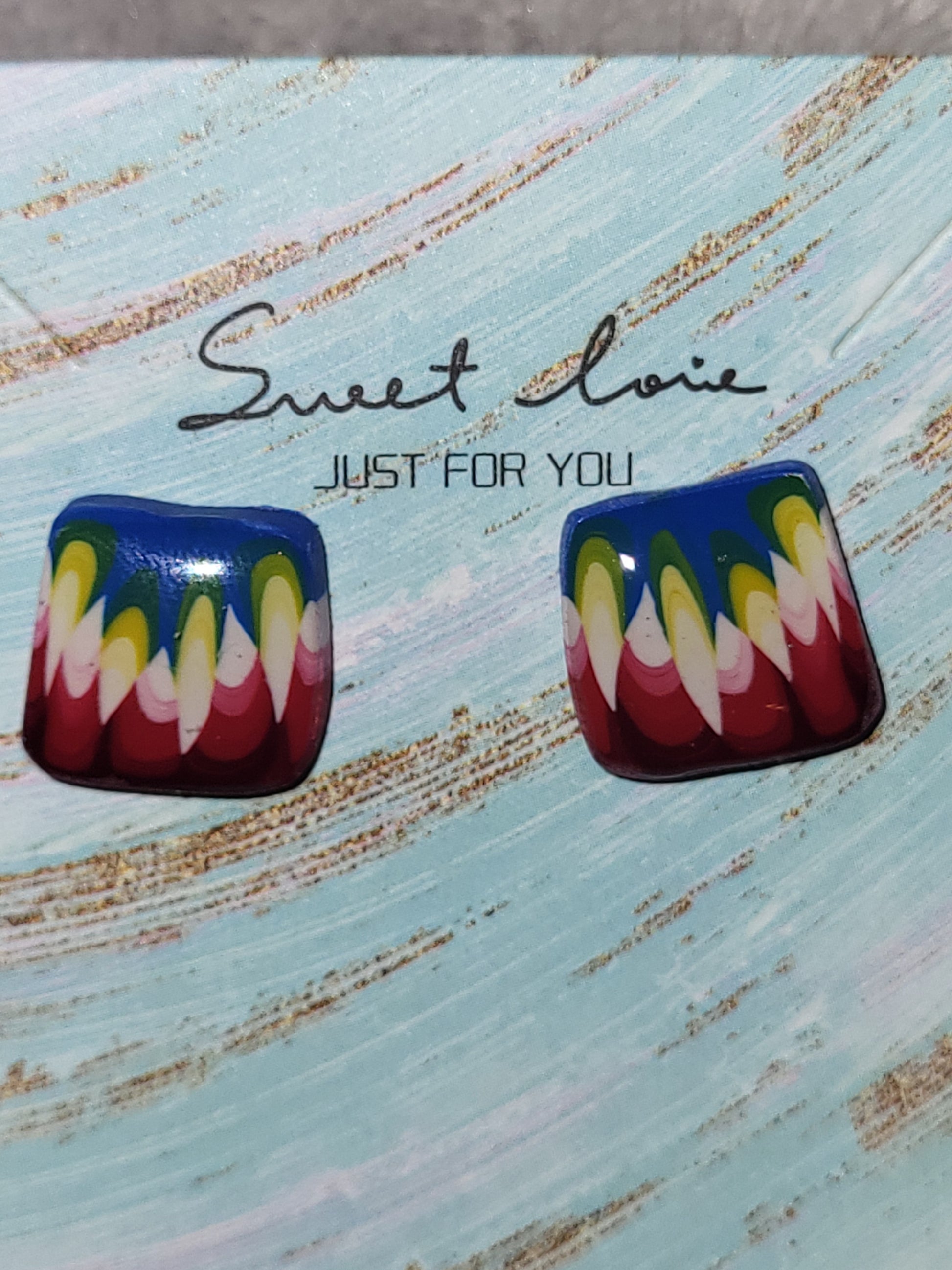 Red white blue and yellow clay cane earrings