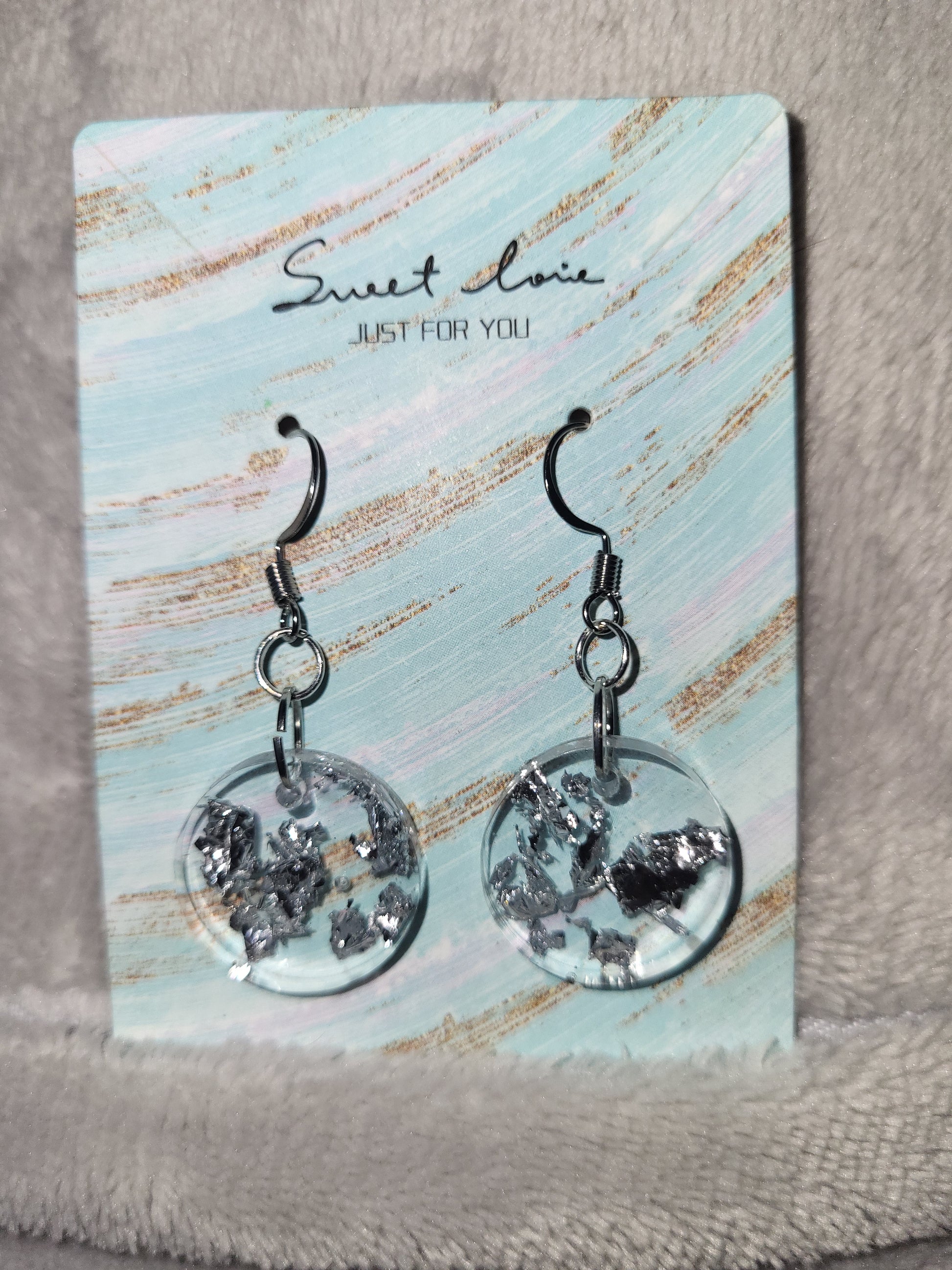 Uv resin with silver shimmers made into earrings