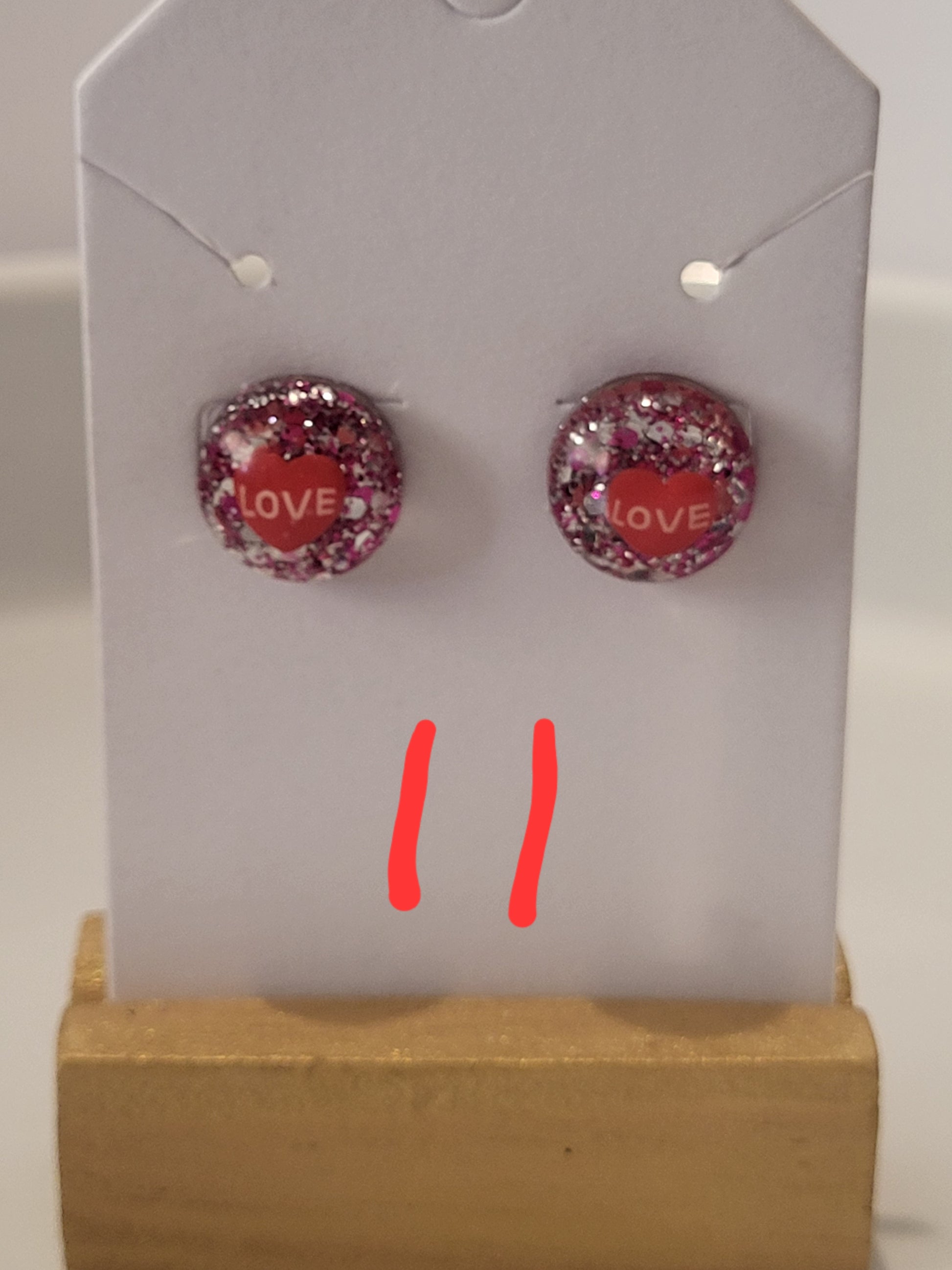 Handmade studded earrings inspired by valentine's day